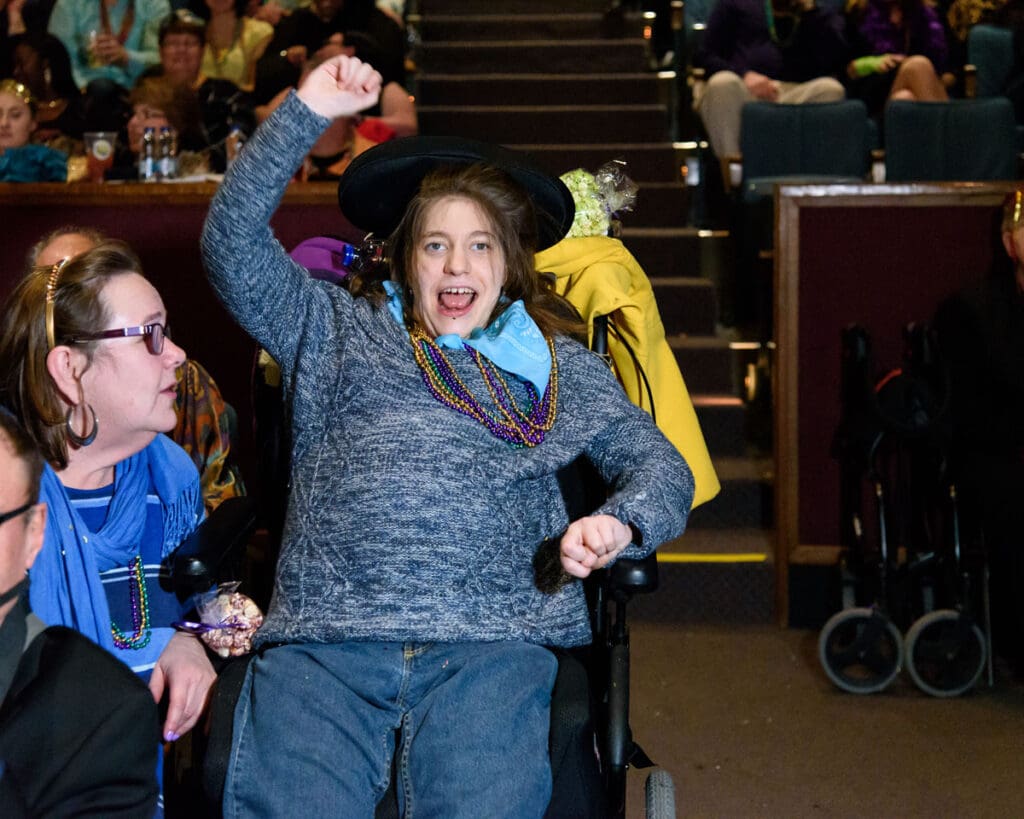 Photo of a woman in a wheelchair having fun at Community Rocks.
