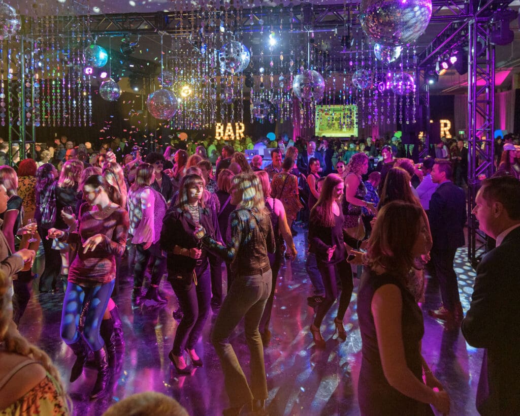 Photo of a crowd on the dance floor at Community Rocks.