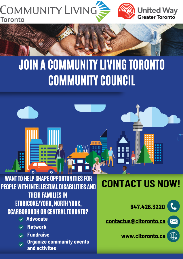 Volunteer With Us! Contact us by email at: volunteers@cltoronto.ca Join A Community Living Toronto Community Council Contact us!Email: contactus@cltoronto.caPhone: 647-426-3220